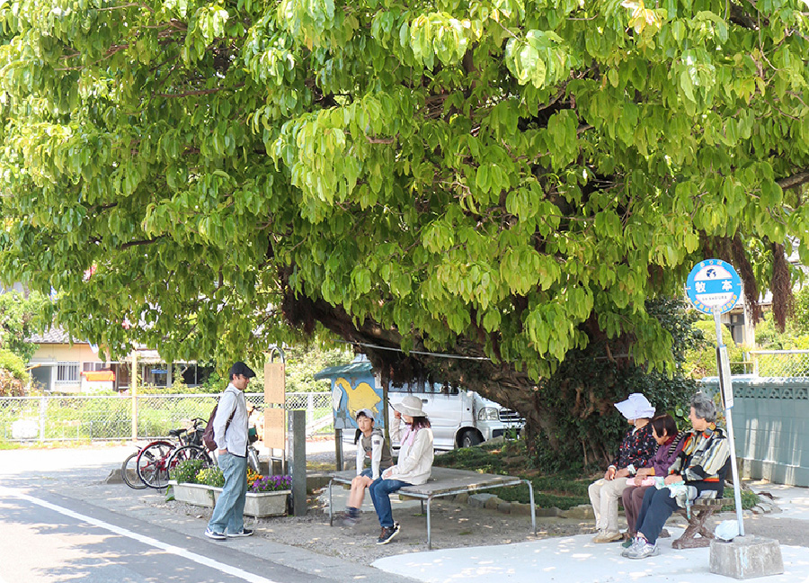 ❷牧島に根を張る、樹齢数百年のアコウの巨木。太く複雑に絡み合った根の姿は圧巻です。この巨木をはじめ、牧島の海沿いにはアコウの木が多く見られます。